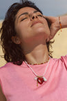 - Pierre naturelle de cornaline (coeur), perle eau douce naturelle, sardine plaqué or 18k, fleur de quartz rose.